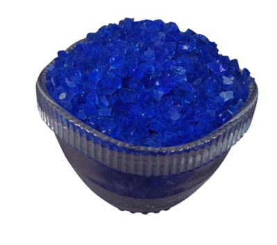 Silica Gel Blue semi-transparent glassy substance containing an indicator as “Cobalt Chloride” a heavy metal salt. When free from moisture the Granules or beads are dark blue in color. As the beads takes up moisture, they turns to light blue gradually & When they turn pink, When the gel has absorbed approximately 8 % percent of its weight in water the colored crystals will turn from blue to pink making an easy visual indicator of whether the gel has become saturated with moisture. It indicates that the gel needs to be replaced or regenerated. The indicating silica gel will still adsorb up to 40% of its weight in water vapor just like the non-indicating In fact, it is mainly used as indicator for the extent of dehumidification and moisture absorption in sealed vessel and Silica Gel Breather Industry. Blue Silica Gel is also know as Indicating Silica Gel, Self Indicating Silica Gel, Blue Desiccants, Moisture absorber.